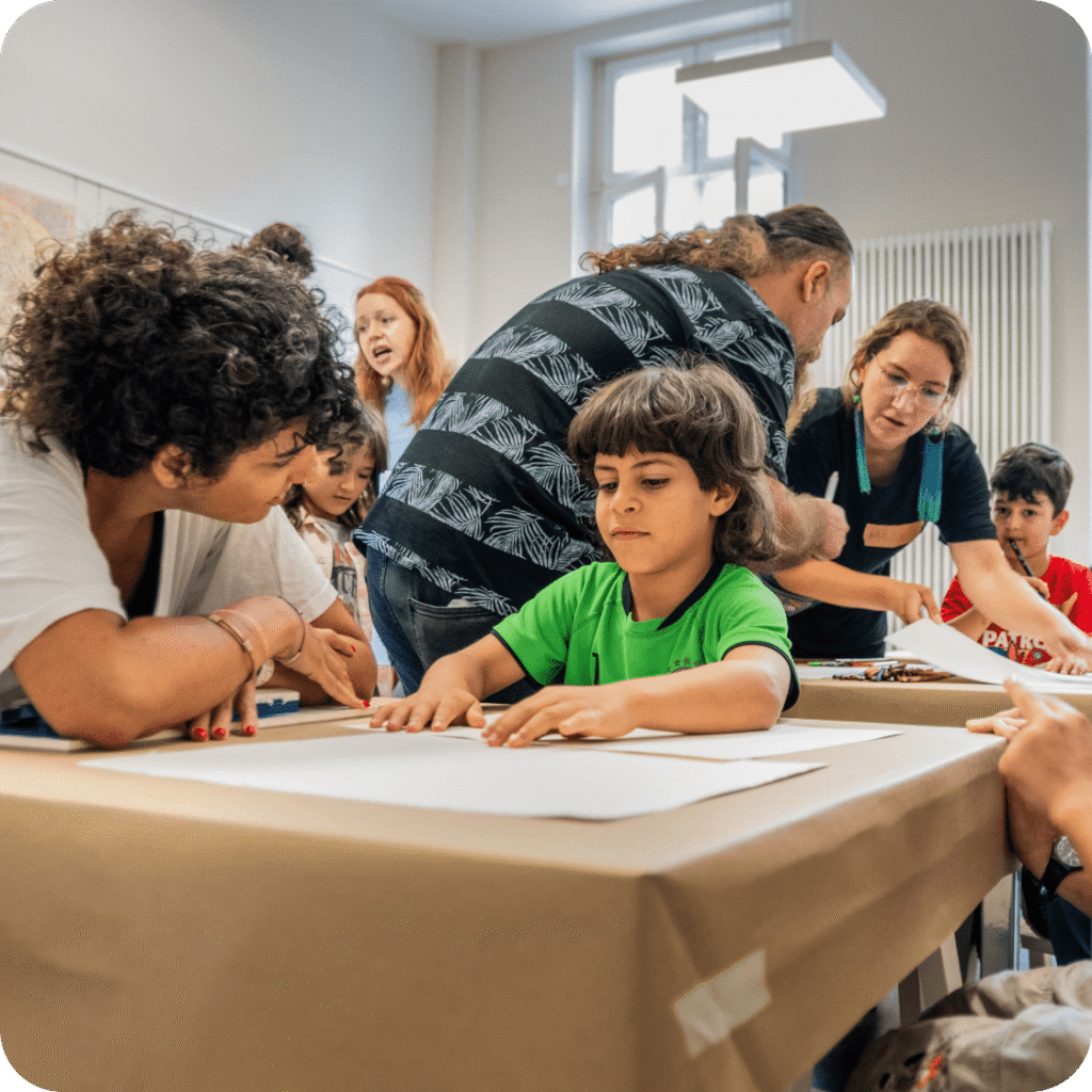 Diese 3–14-tägigen künstlerischen Labore finden in Gebieten mit begrenzten Ressourcen, Zugangsbarrieren und spärlicher kultureller Infrastruktur statt – von ländlichen Regionen über sozial marginalisierte Umgebungen bis hin zu Räumen für Kinder und Jugendliche mit Fluchterfahrungen.